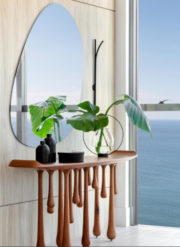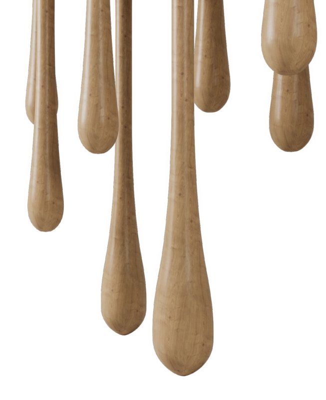A coleção “chuva” também inspirou sua leveza na suavidade com que a madeira pode ser tratada. Em escala industrial, as peças são reproduzidas seguindo parâmetros rigorosos de desenho e acabamento. Contudo, cada peça com viés escultural, traz consigo o DNA do marceneiro, que empresta um tanto de si no processo produtivo. A diversidade visual da madeira manuseada com a delicadeza do toque humano torna cada objeto da coleção, único e vivo.