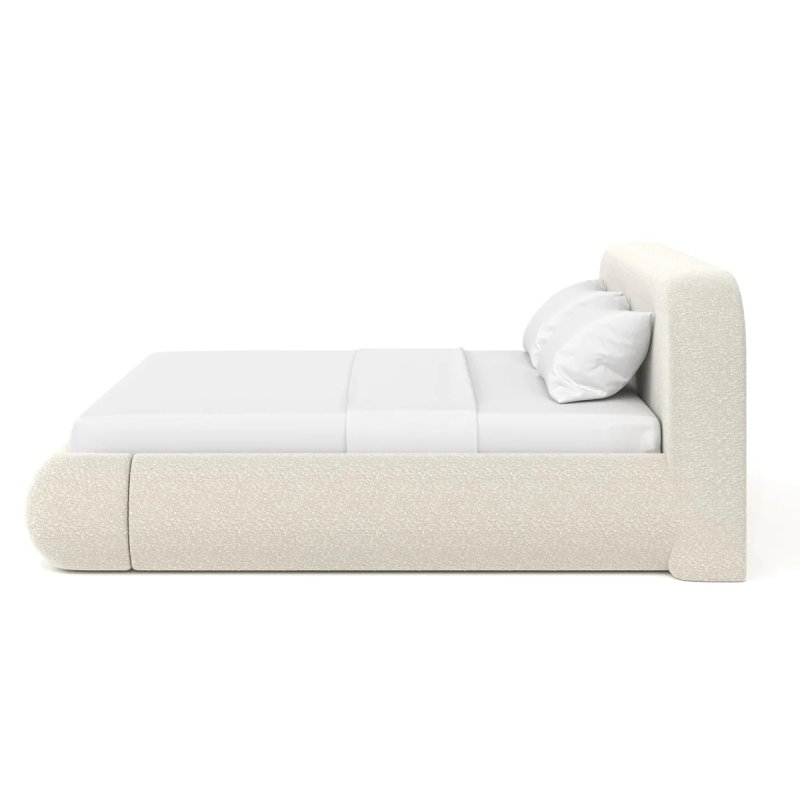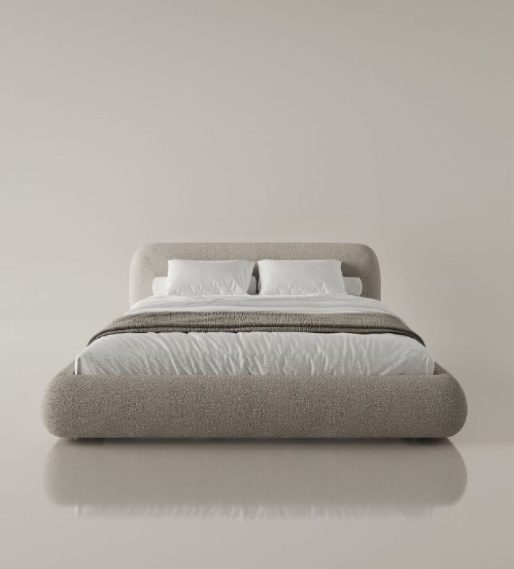A Cama Brilla combina formas orgânicas e proporções generosas para transformar o quarto em um refúgio de aconchego e sofisticação. Seu desenho envolvente é marcado pelo estofamento integral em tecido, que reveste tanto a cabeceira quanto a base arredondada, criando um visual contínuo e acolhedor.