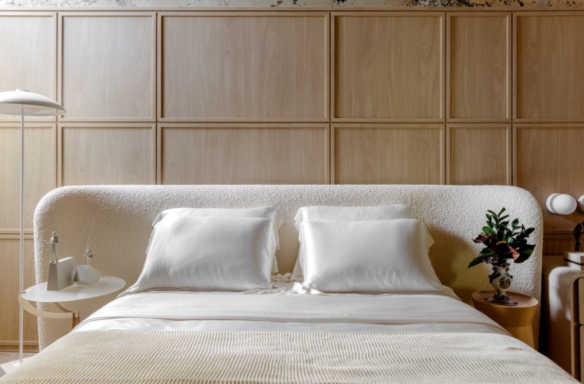 O bom design se une à decoração do quarto com uma peça que remete aos adornos confeccionada a partir dos corais marinhos. Com estérica mais compacta, a cabeceira emoldurada a cama com seu desenho excepicional.